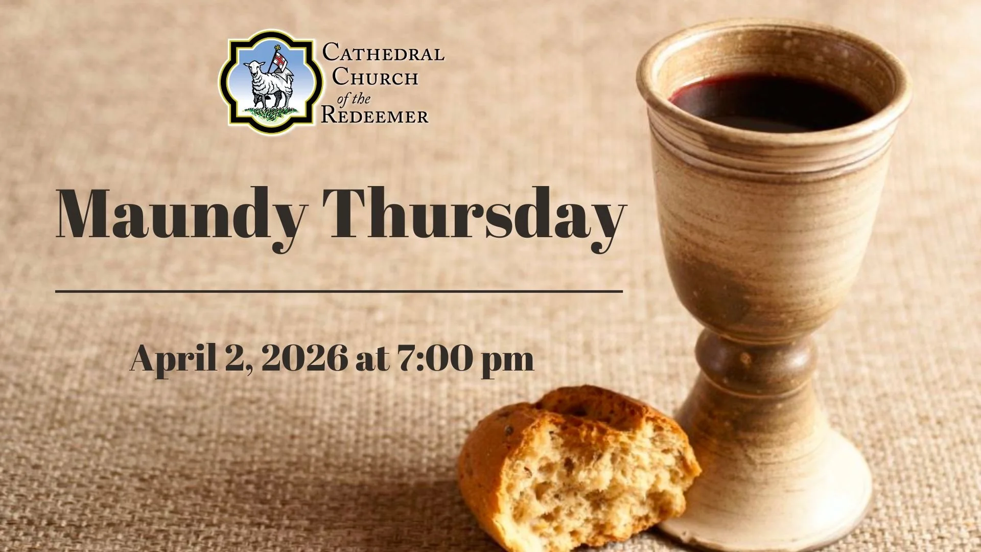 Maundy Thursday | April 2, 2026 Good Friday | April 3, 2026 The Great Vigil of Easter | April 4, 2026 Easter Sunday | April 5, 2026